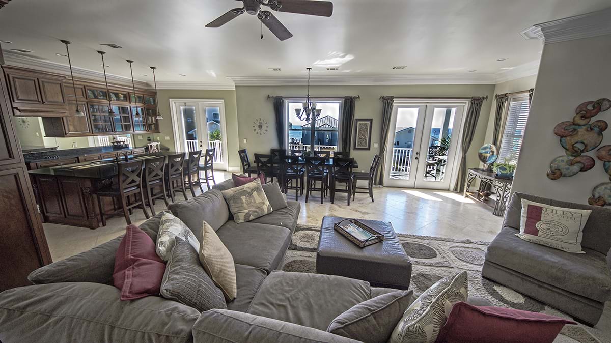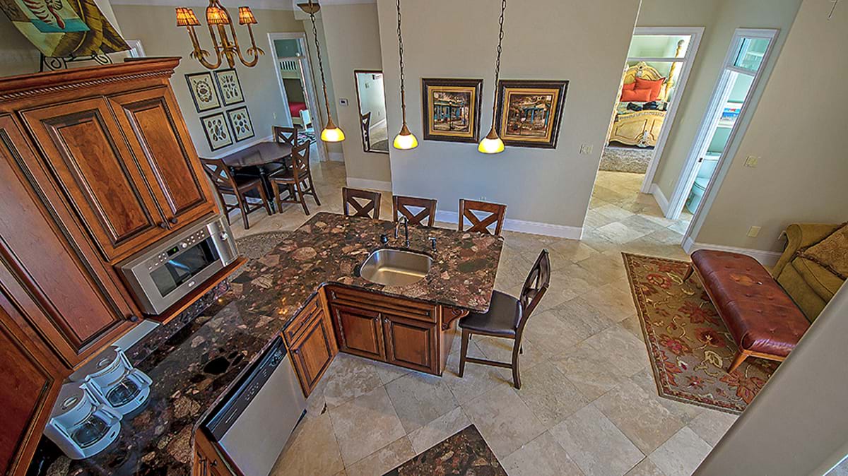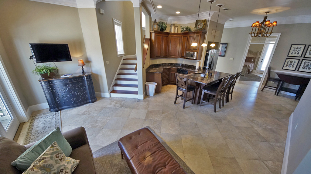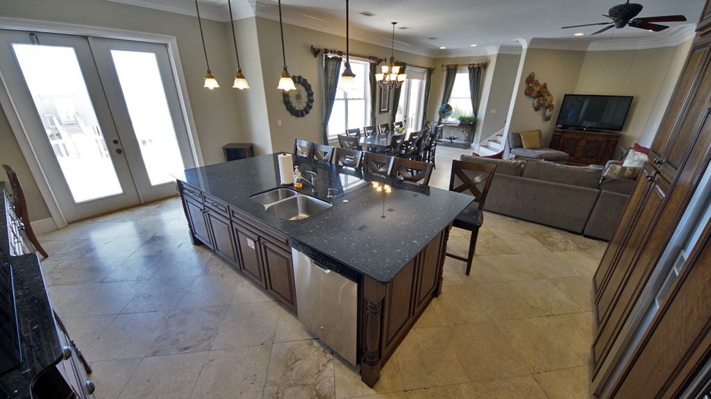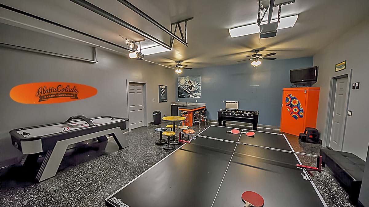 Alotta Colada accomodates 44 people comfortably. The main house has 6 bedrooms and two additional bunk areas. The enormous main kitchen is a perfect gathering place for the whole crowd and there is an additional kitchen convieniently located near the pool on the main floor. There is no need to wait around for a shower, as this house is loaded with 6 full baths and 2 half baths. If that is not enough, the additional space in the carriage house includes two bedrooms, a full bath, and spectacular kitchen! There is certainly plenty to do and plenty of space in which to relax and unwind!