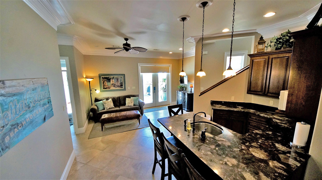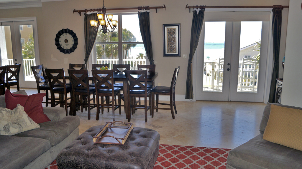 Alotta Colada beach house is the perfect spot for a family gathering or multiple family getaway due to its unique feature of being located on a private/gated street with it's own private beach! Sit on one of the many decks overlooking the beautiful crisp teal waters of the gulf, or take a walk on the white sandy beaches which are located just steps away from the main house and private pool. If you want a break from the beach , enjoy the pool and bar area with TV/Satelitte or step into the spacious courtyard to play shuffle board and basketball while still overlooking the gulf that is just steps away. Additionally, the garage has been converted into a game room including ping pong, air hockey, foosball, and a bar area.